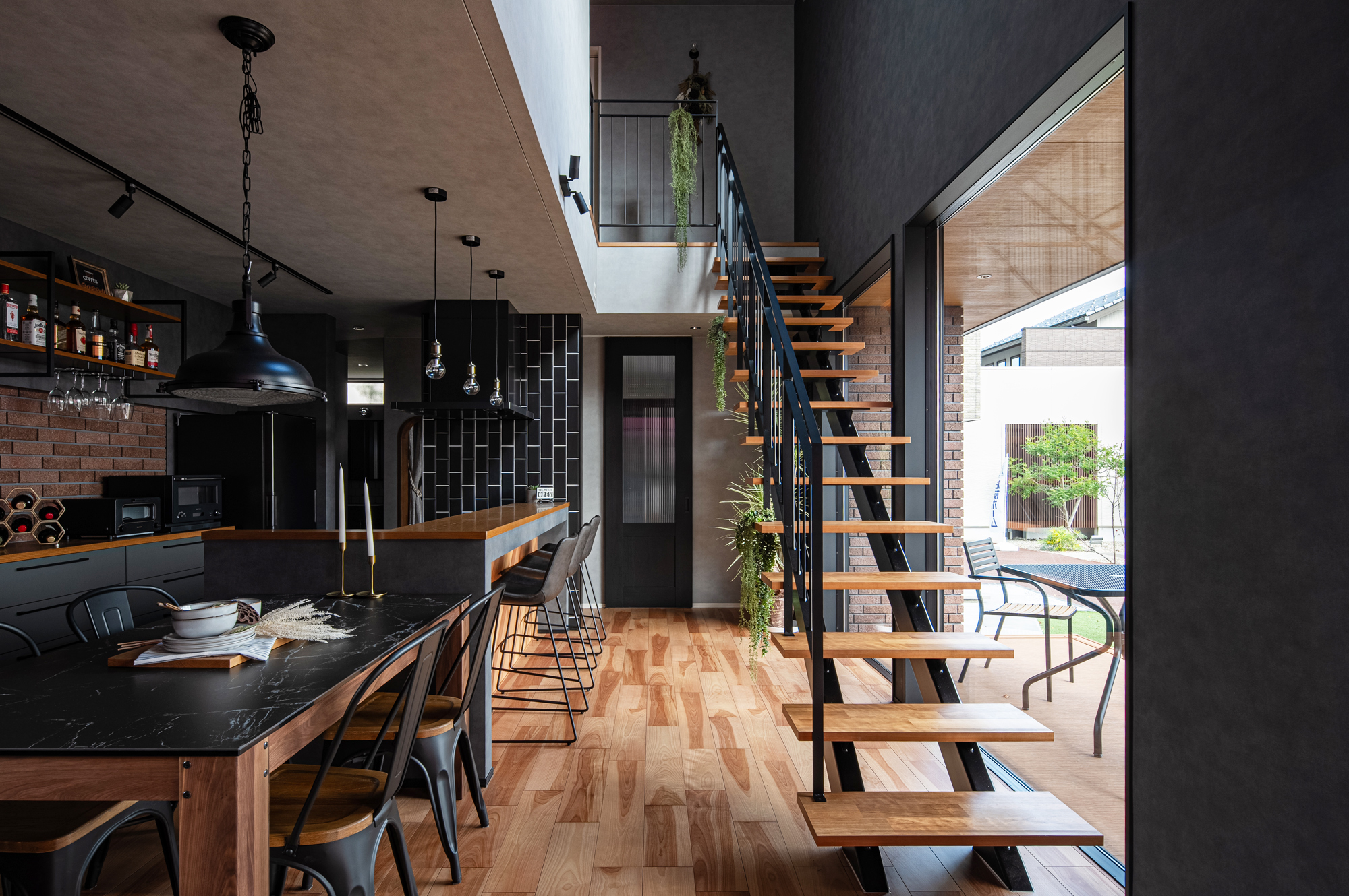 内観もまたブラックと木目をベースに、タイルをアクセントとしたブルックリンスタイルの美意識が息づく、洗練された空間です。