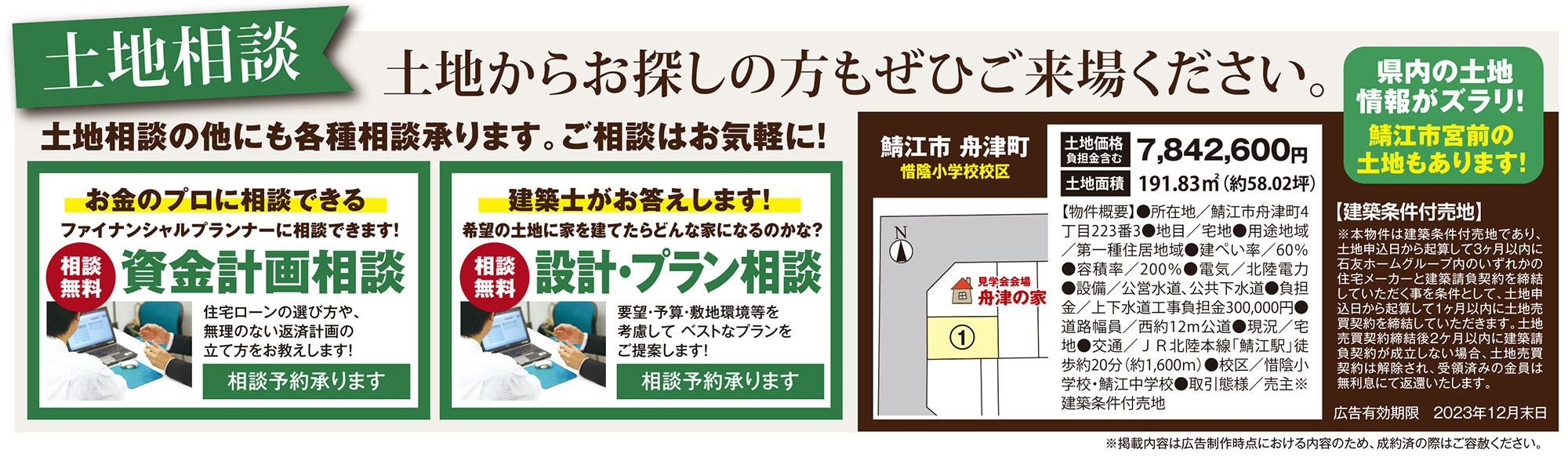 同会場にて土地相談や資金計画相談、設計・プラン相談も承ります!