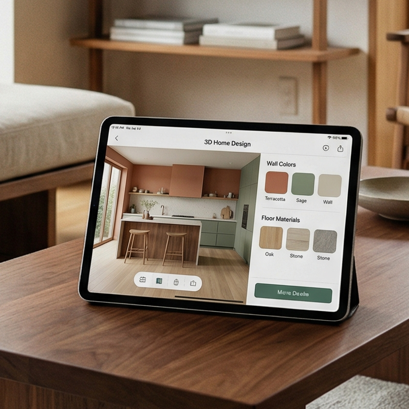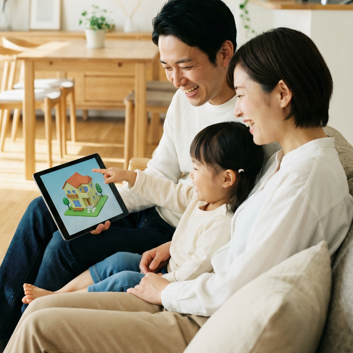 作った間取りが、その場でリアルな立体画像(3D)に!ただの平面図ではなく、自分たちの思い描いた間取りがCGで、未来の暮らしのイメージが膨らみます。