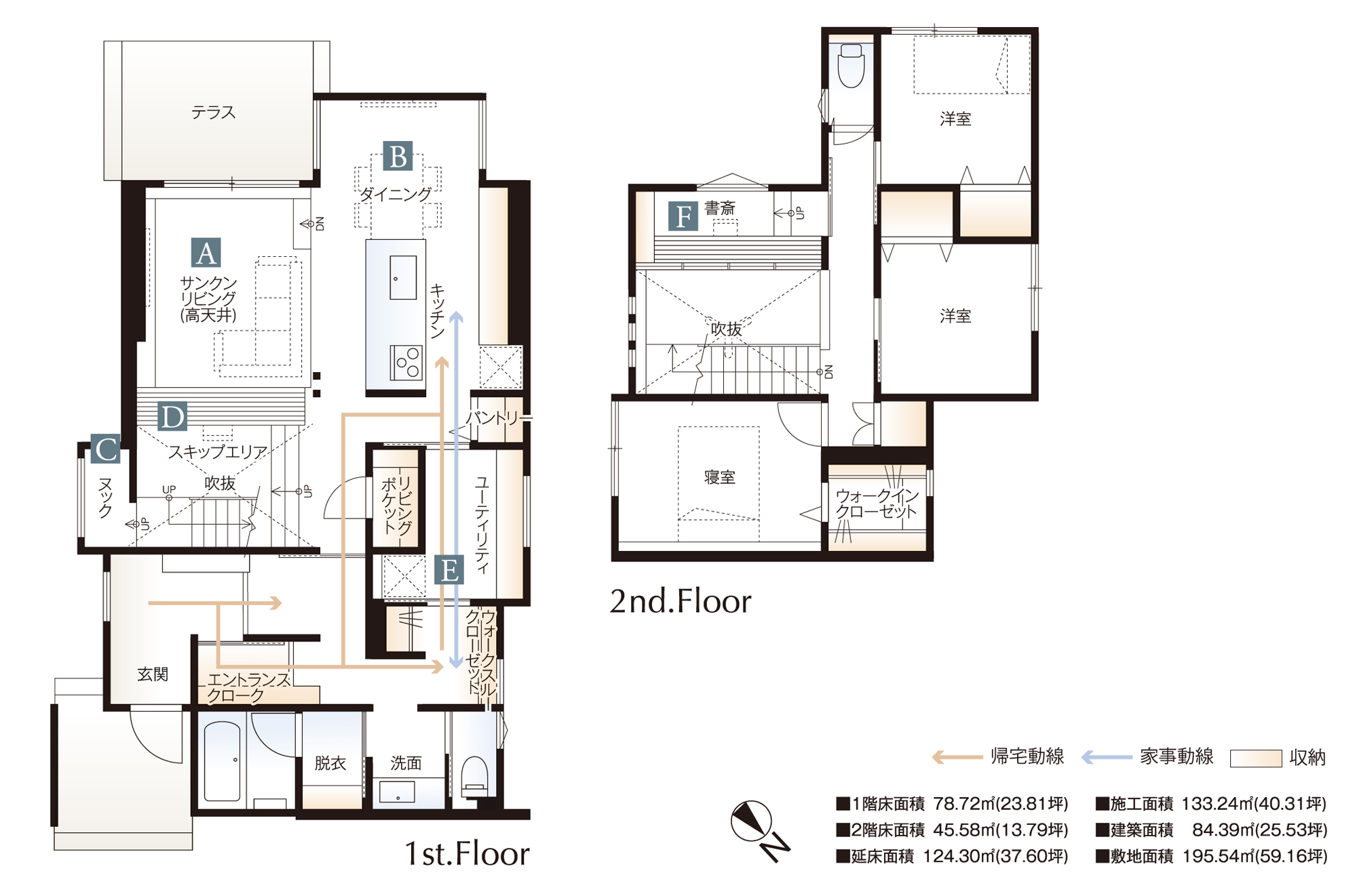 キッチンから目が届くスキップエリアは、家族の学習エリアです。ご主人の仕事・読書にはもちろん、お子様の宿題スペースとしても重宝します。またその奥にはひと息つきたい時に落ち着ける隠れ家のようなヌック空間を。家族の気配を感じながら個の時間を有意義にお過ごしいただけます。
