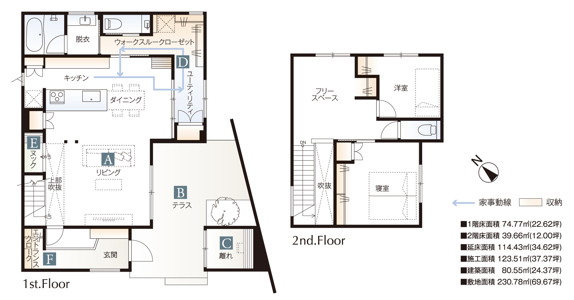 家族の気配を感じながらも、心地良い距離感でつながっていられるよう23帖の大空間LDKを中心に、思い思いの「居場所」を各所に散りばめました。階段下のヌックにこもって読書したり、テラスで外遊びを満喫したり。