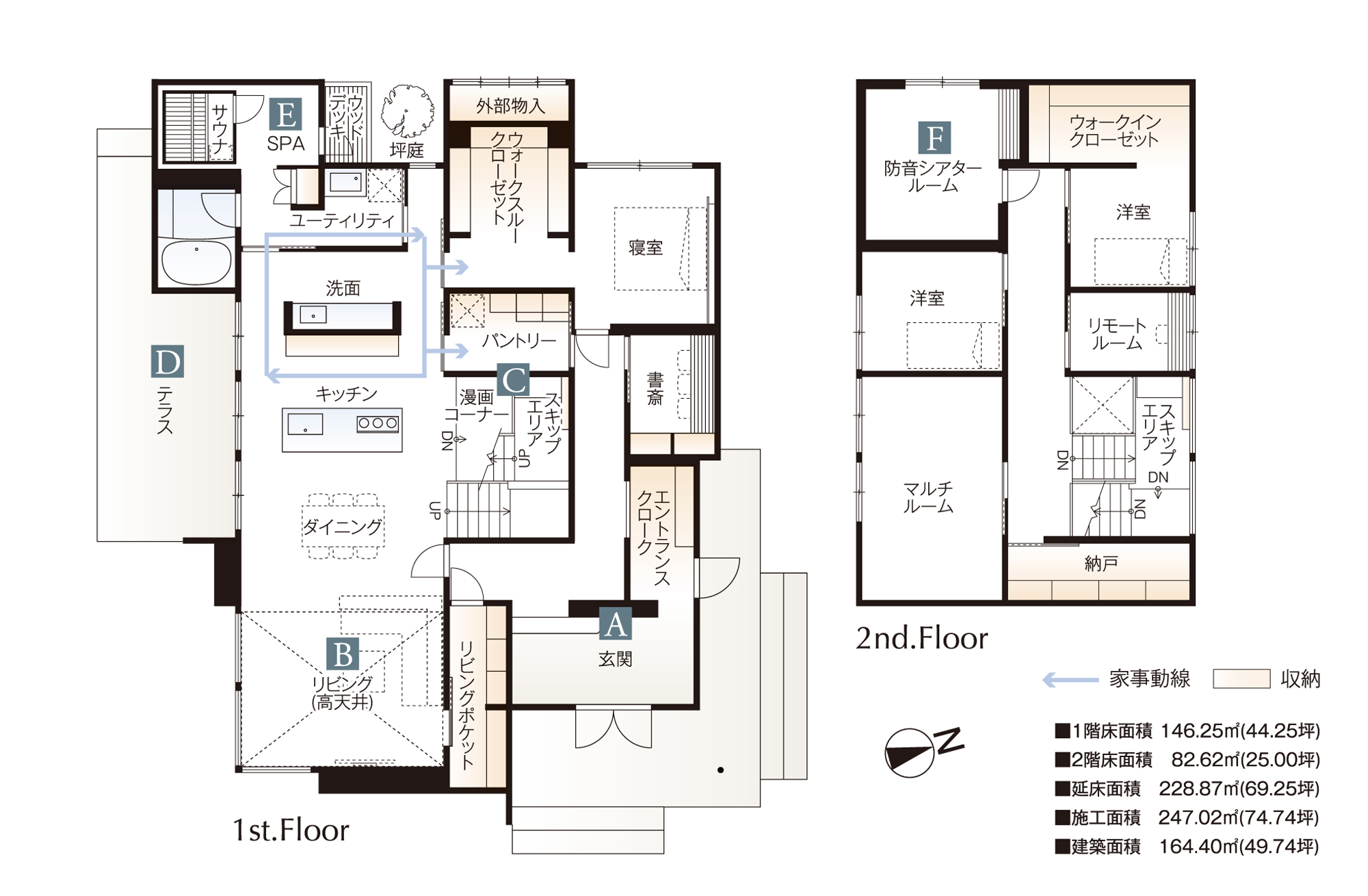 さらに、心身を健やかに整えるサウナや外気浴ができるSPAエリアの空間提案、2階の防音シアター、そして遊び心あふれるスキップエリアが、大人から子どもまで、五感を刺激する至福の時間を創出します。