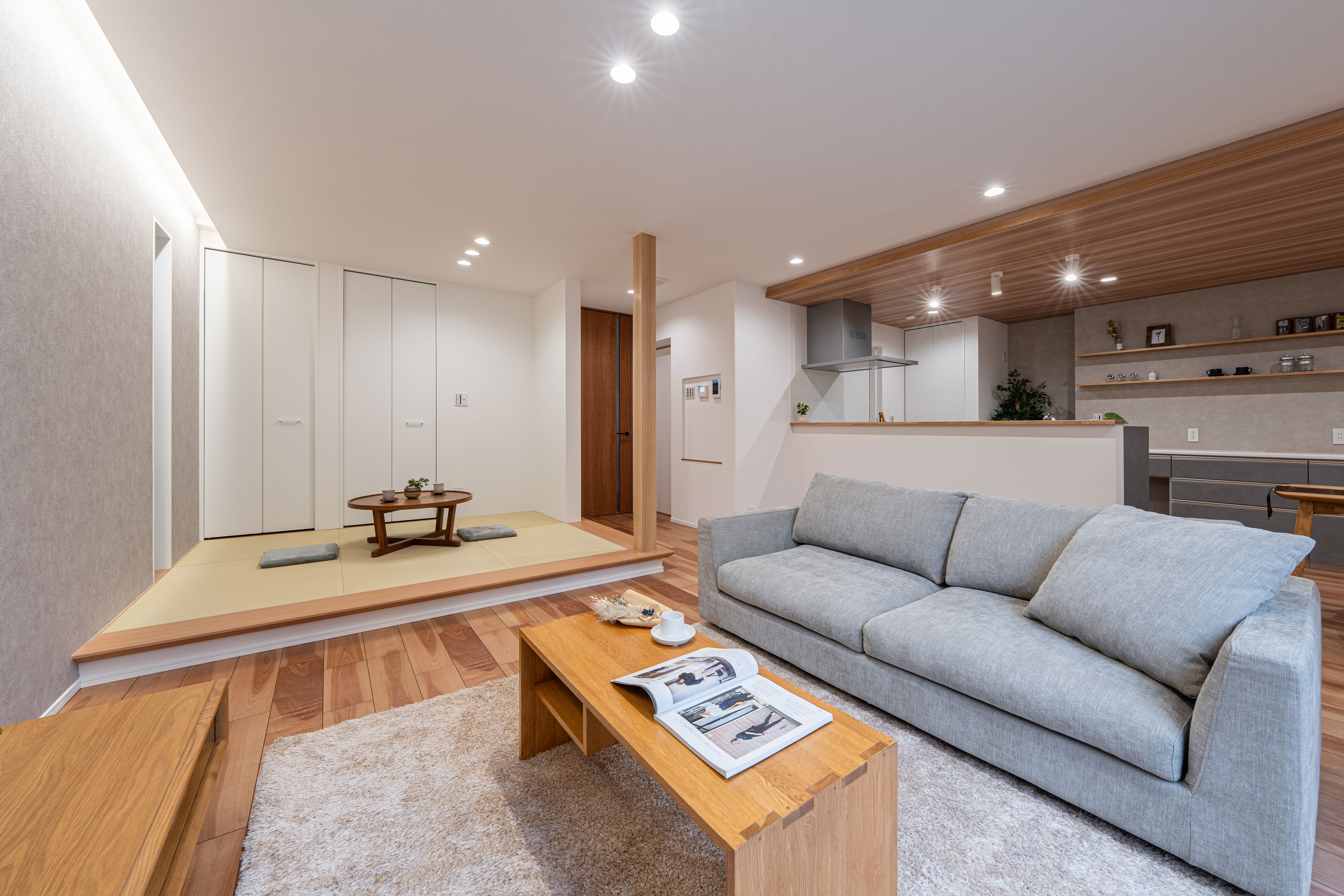 様々なスタイルでくつろげるように畳コーナーを設置した