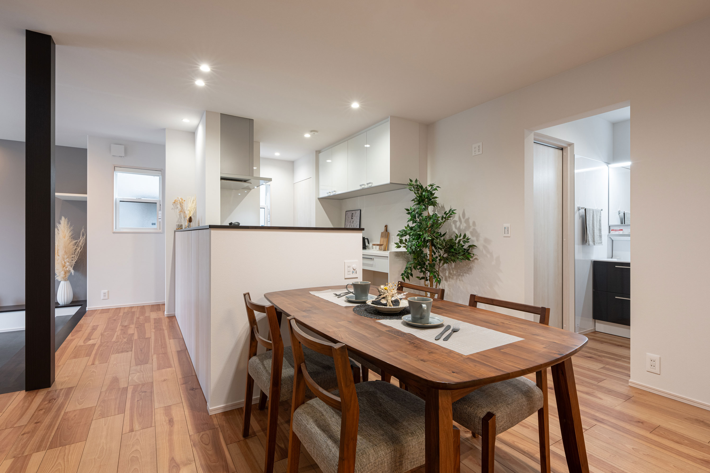 家事時間の短縮を考え、水廻りはキッチン背面に集約。