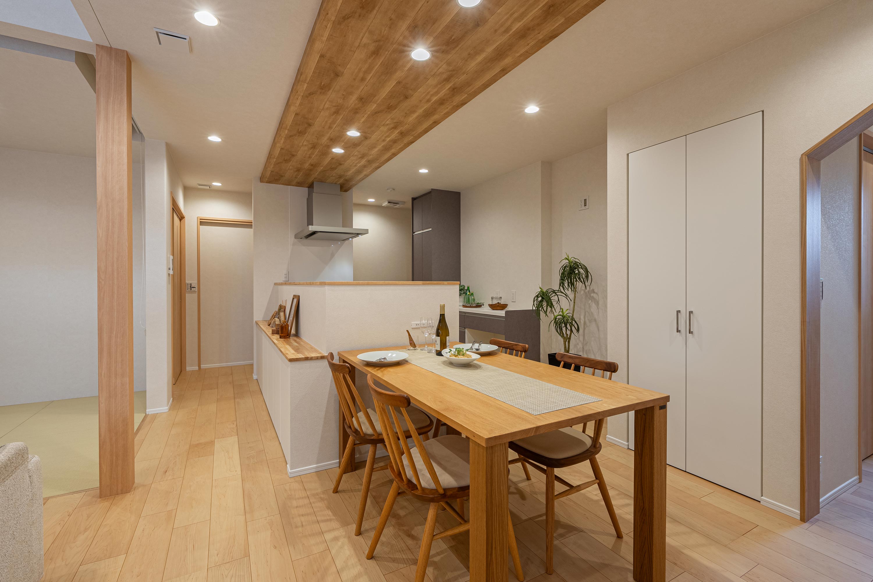 生活動線もキッチンを起点に水廻りをコンパクトにまとめ家事動線を短縮することで、効率的な暮らしを叶え、