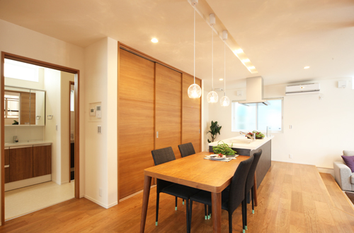 日中の生活の中での食事・洗濯・収納といった各スペースを単に連ねるだけではなく、自由に回遊できる動線は行き止まりや混雑などが無用の間取りで、ストレスなく快適な生活を送ることができます。